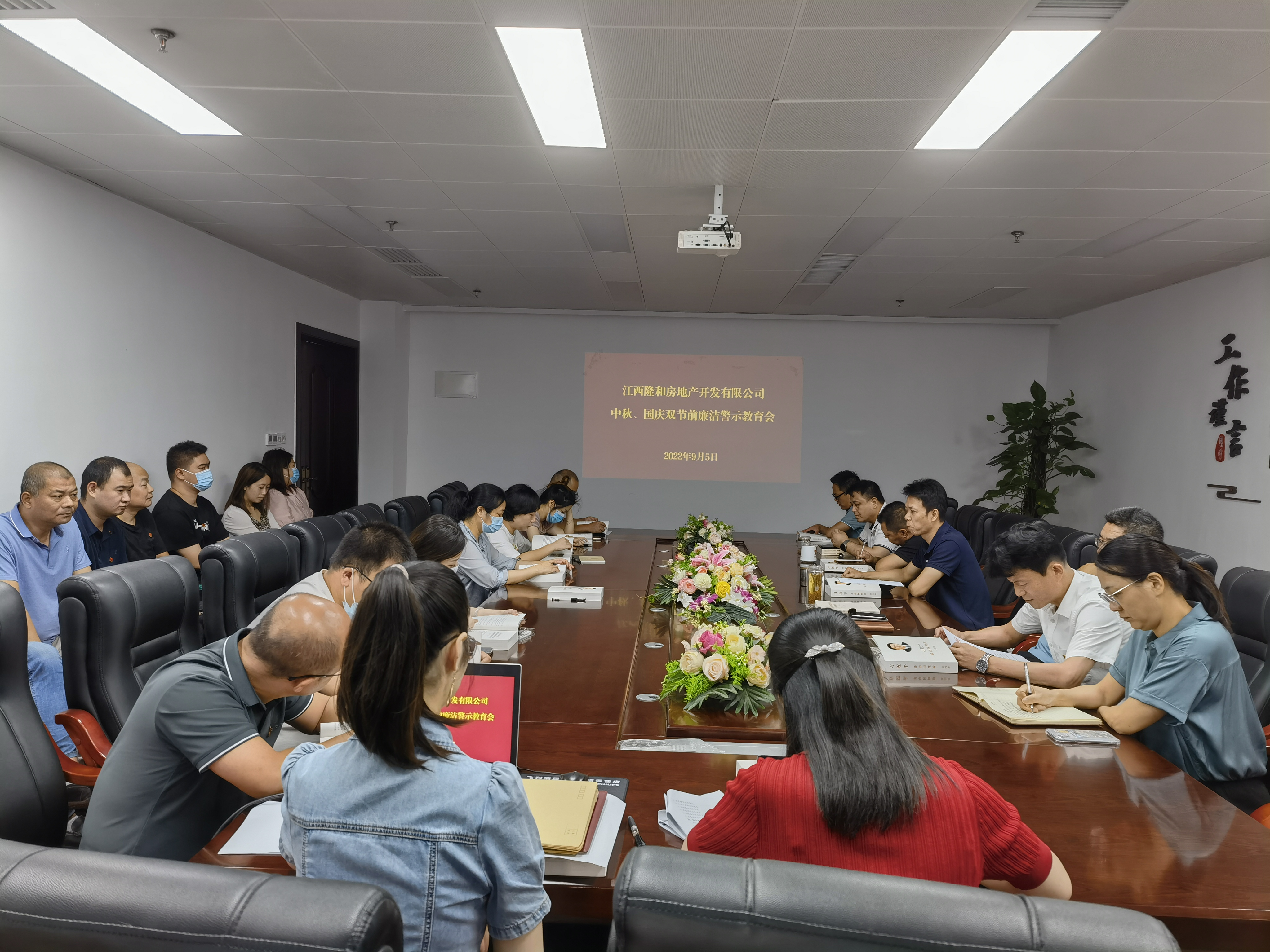 2022年9月,,,,,,,,隆和公司纪检监察室组织召开中秋、国庆双节前清廉警示教育大会及公司要害性重点岗位职员廉政谈话运动。。。。。。。