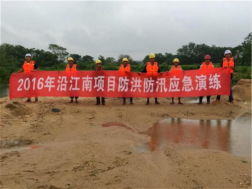 沿江南大道南延项目办开展防汛、触电清静演练